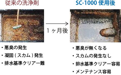 『SC-1000』に含まれる有効成分は、石油系の界面活性剤ではなく、オート麦・とうもろこし・りんご・大豆などの植物の抽出物で、分解の容易な脂肪酸系界面活性剤です。
